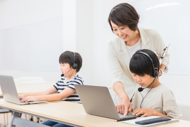 子どもが定期的に教室に通い、教師やクラスメートとの交流を通じて英会話能力を向上させる形式の英会話スクールです。